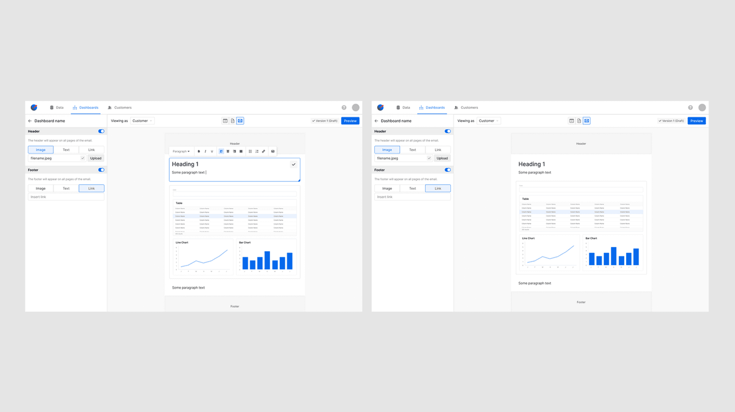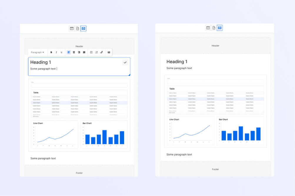 Hard to differentiate editing vs. saved state of email report: We created a more distinct visual difference between the editing and saved state in the email builder.