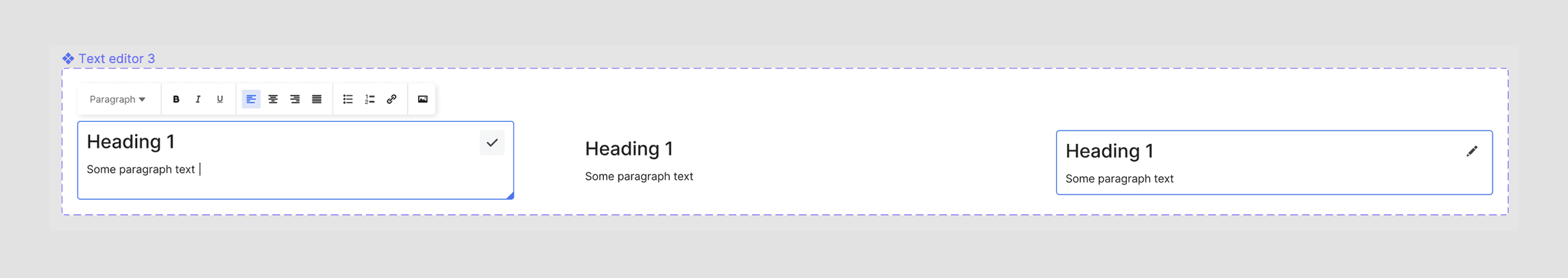 Text editor will appear inline, and only support rich text (no markdown)