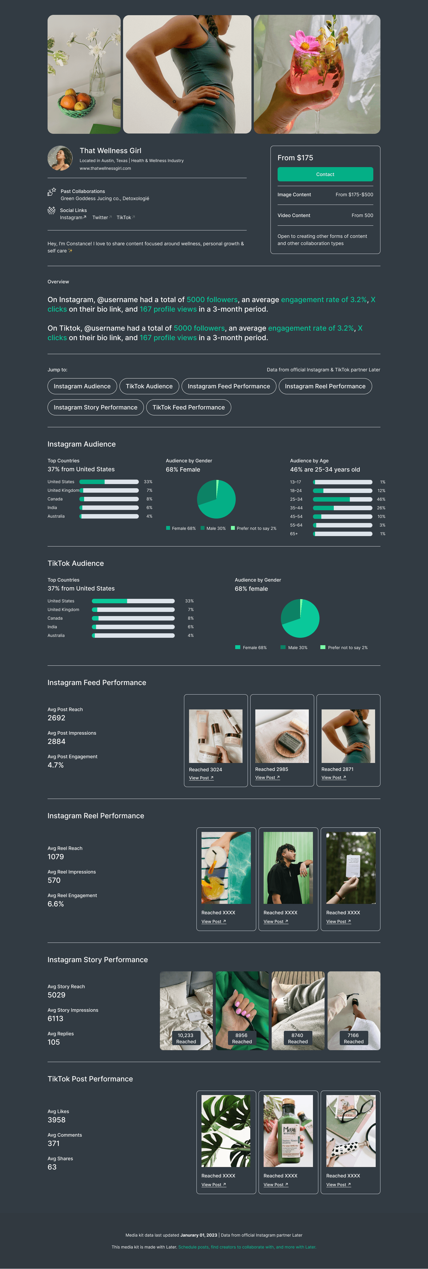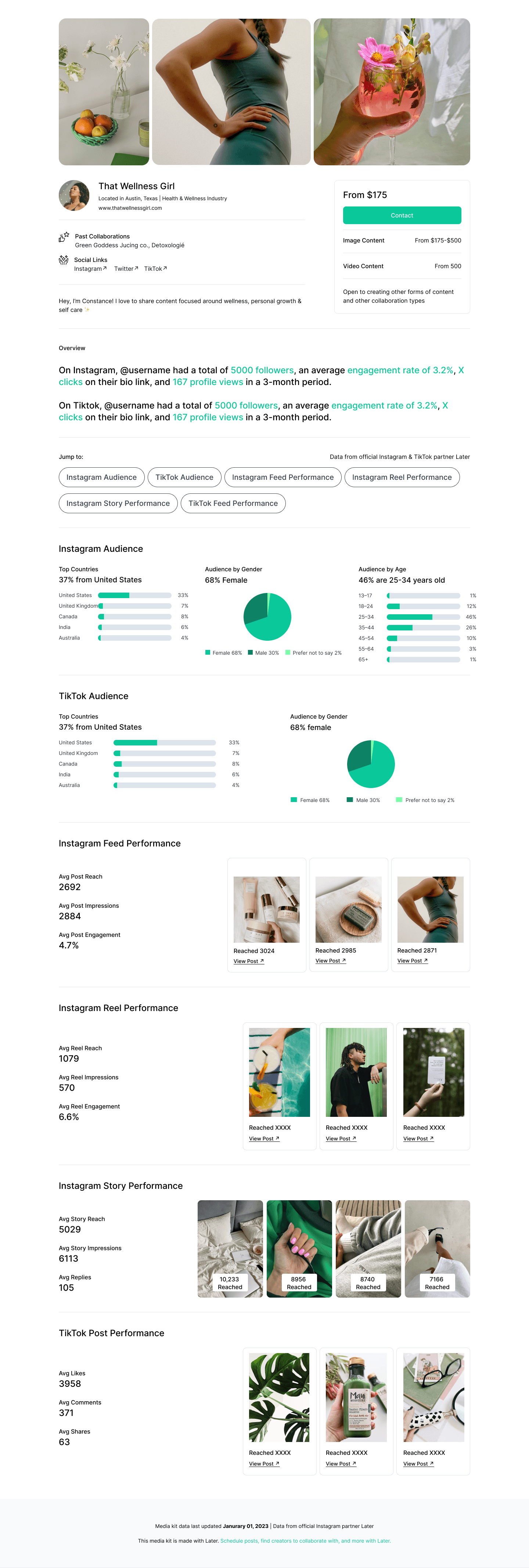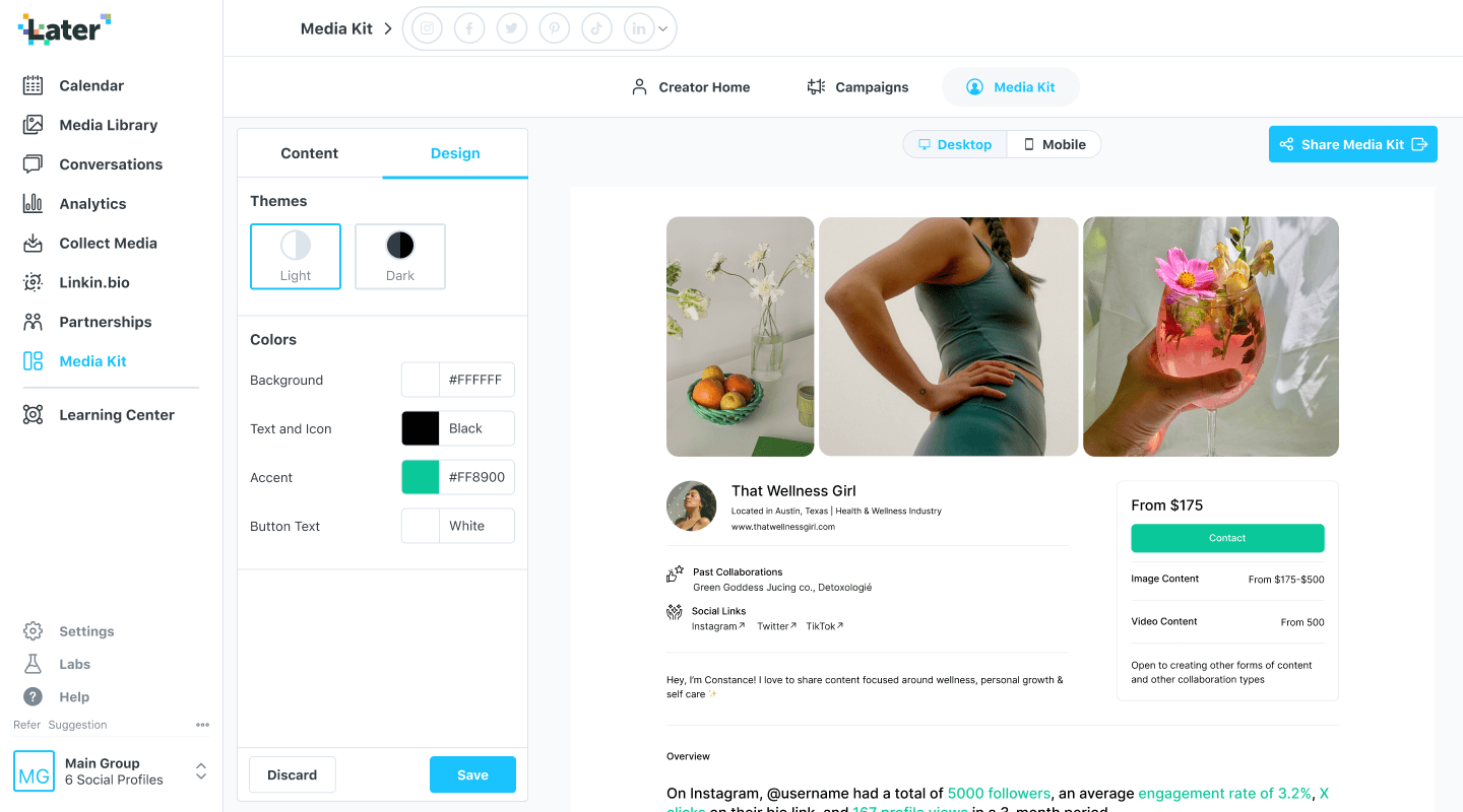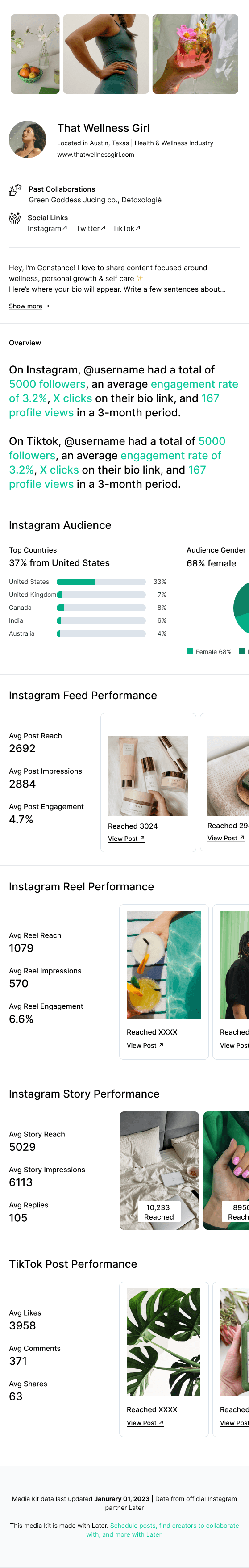 Help creators win brand deals by providing a customizable portfolio to share with brands on and off Later.