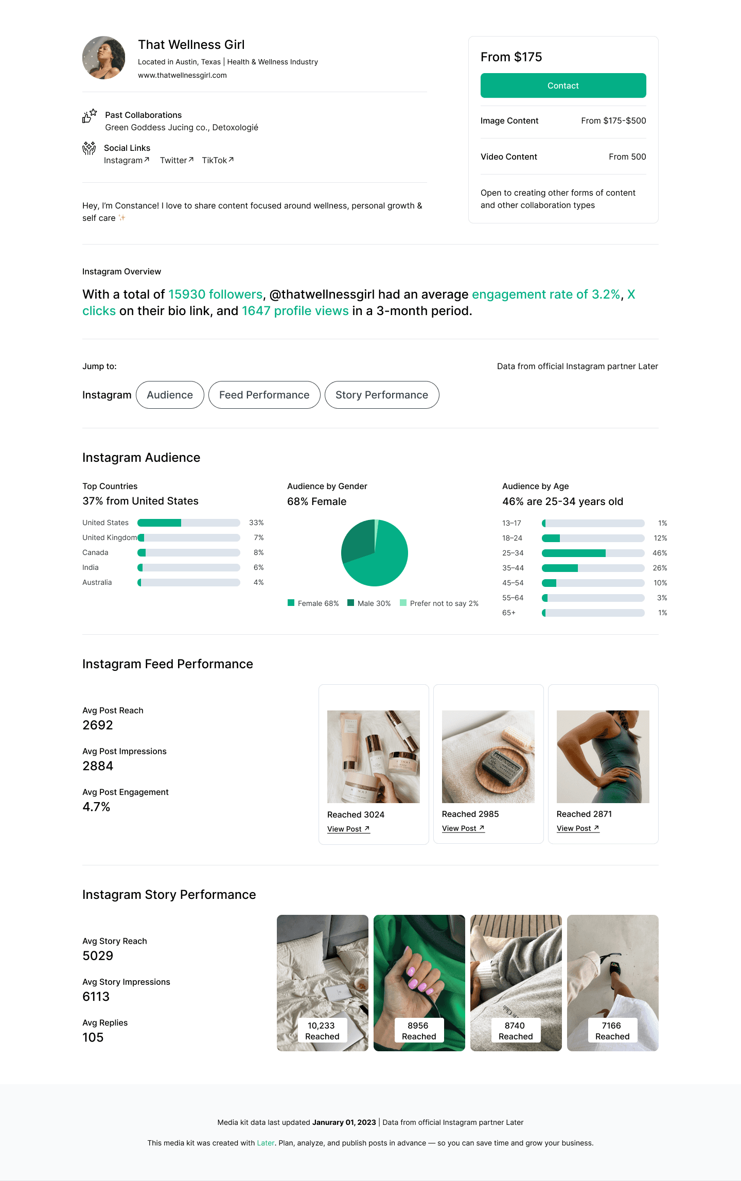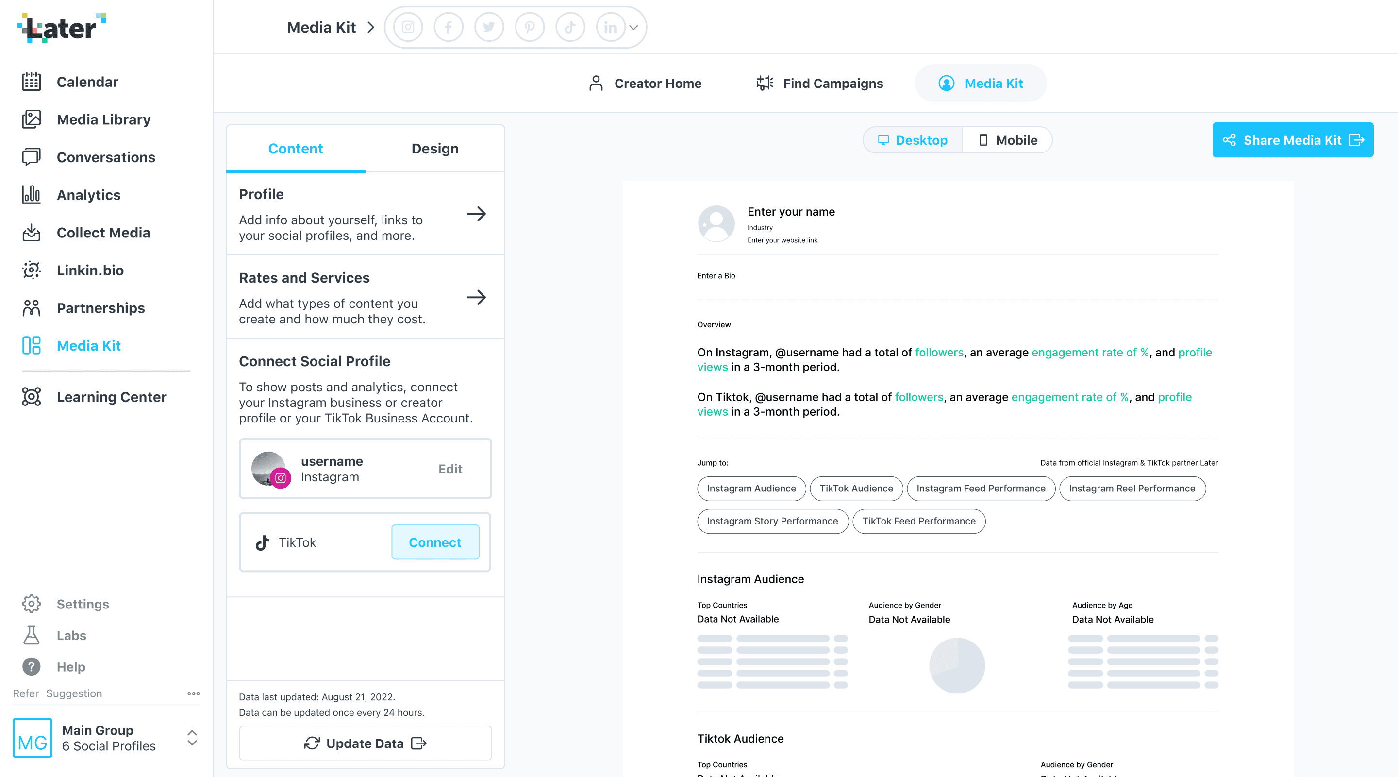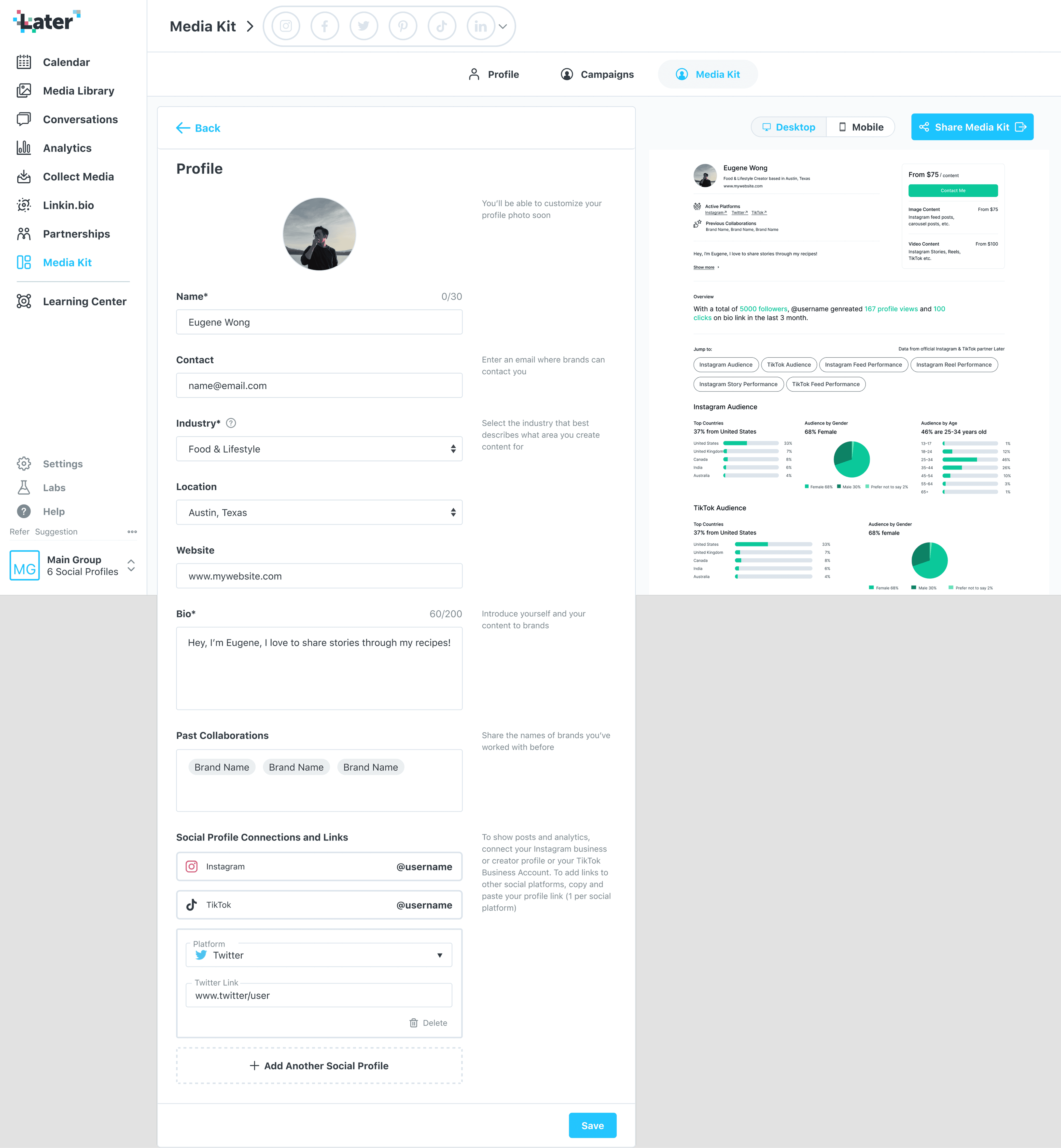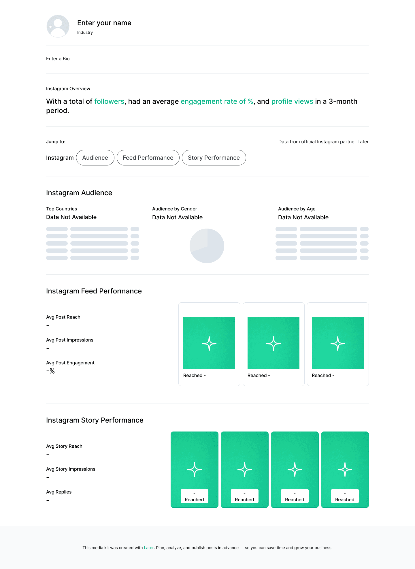 Help creators win brand deals by providing a customizable portfolio to share with brands on and off Later.